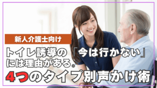 ハウツー 【新人介護士向け】トイレ誘導の「今は行かない」には理由がある。4つのタイプ別声かけ術 新人介護士向け。トイレ誘導の拒否の4つの理由を理解することで、無理のない安全な介助が楽になります。BPSDのサインを見逃さず尊厳を守る声かけ術を解説。 2025.10.11 ハウツー介護新人介護士向け認知症