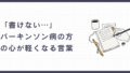 ハウツー 「書けない…」パーキンソン病の方の心が軽くなる言葉 パーキンソン病の方の「書けない」訴えに悩んでいませんか?厚生労働省の指針に基づき、ご本人を安心させる具体的な声かけを紹介。明日からのケアが変わります。 2025.10.15 ハウツー介護認知症
