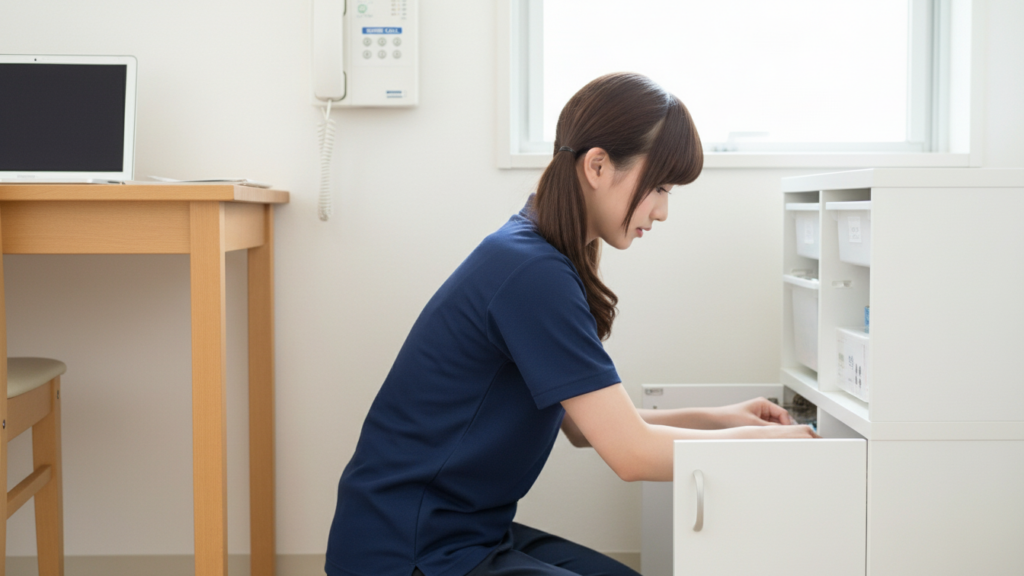 整理整頓が事故を防ぐ理由を理解することで、現場での焦りが楽になります。新人介護士が直面しやすい離席のリスクや物品迷子を物理的に解消する5Sの視点を紹介。